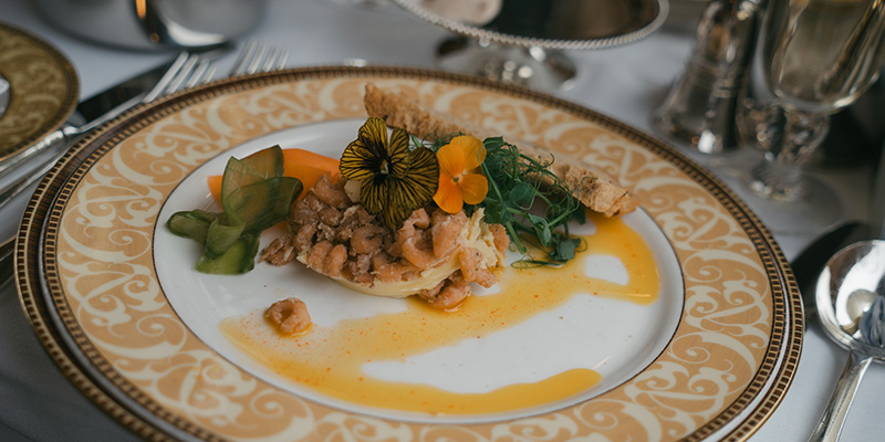 One of our attentive, liveried stewards will show you to your impeccably laid table, with its pristine white linen and sparkling glassware.