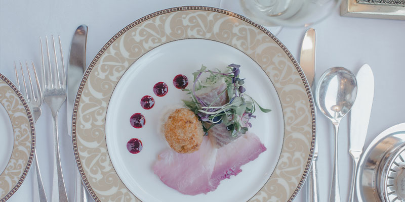 Each dish features the freshest seasonal ingredients and a mix of classic and innovative recipes, crafted with meticulous attention in our kitchen carriage, before finishing with our Great British Cheese Board and a lovely glass of port.